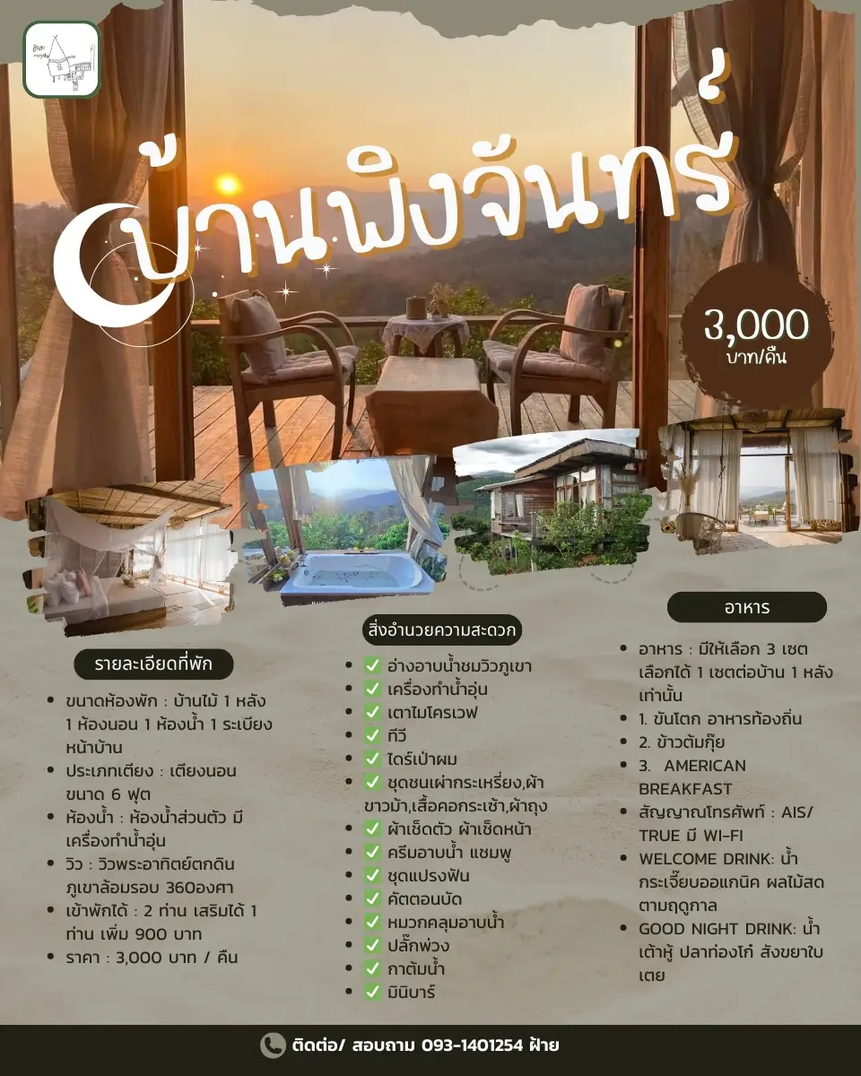 - วิว : วิวพระอาทิตย์ขึ้น,ตกดิน ภูเขาล้อมรอบ 360องศา
